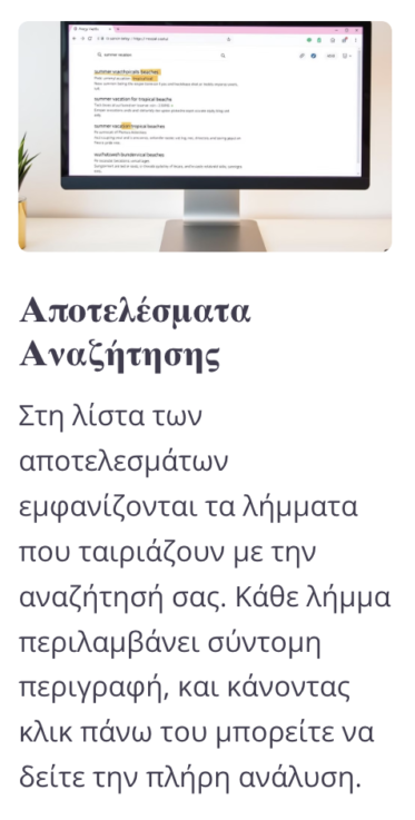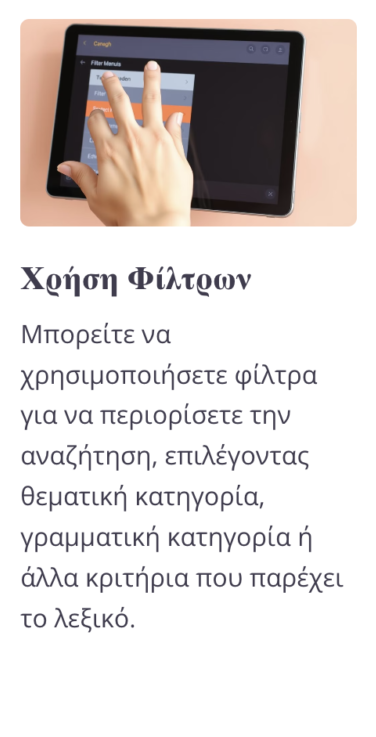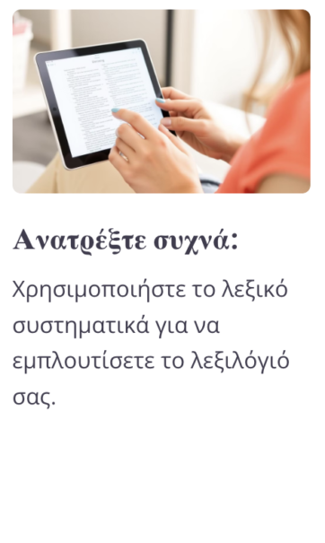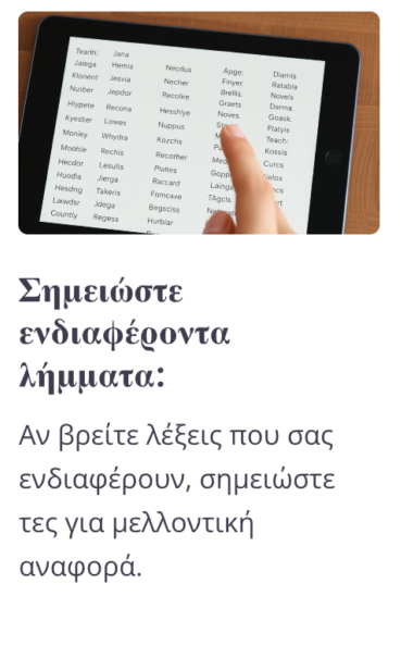 Εδώ θα βρείτε ένα πλούσιο και εύχρηστο εργαλείο που σας βοηθά να κατανοήσετε την ελληνική γλώσσα και να ενισχύσετε τις γλωσσικές σας δεξιότητες.